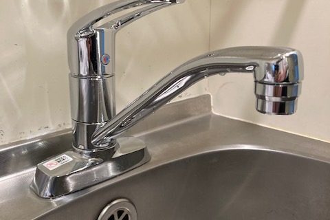 リフォーム部の森です。賃貸マンションのミニキッチンで水栓金具の交換を行いました。 既存の水栓は2ハンドルでした。取り外すと湯水2箇所の穴が開いています。 新しいシングルレバー水栓はKVK製を採用しました。 ハンドルを回す…