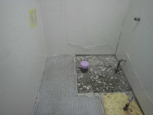 リフォーム部の森です。 テナントビル共用トイレの改修工事を行いました。 和式便器を解体しコンパクトリモデル便器を取り付けました。 段差になっている部分の解体は音もホコリも出て非常にたいへんでした。 しかも給水管が思ってい…