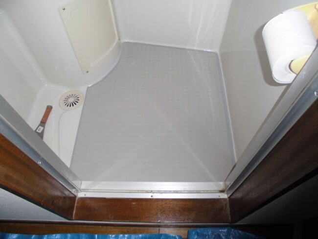 リフォーム部の森です。 3点式ユニットバスの便器を撤去後、配管の穴を塞ぎ洗い場として利用できるスペースを確保。 洗い場全体に浴室床シートを貼り仕上げました。 今までは浴槽で体を洗うしかなかったのですが、これからは外に椅子…