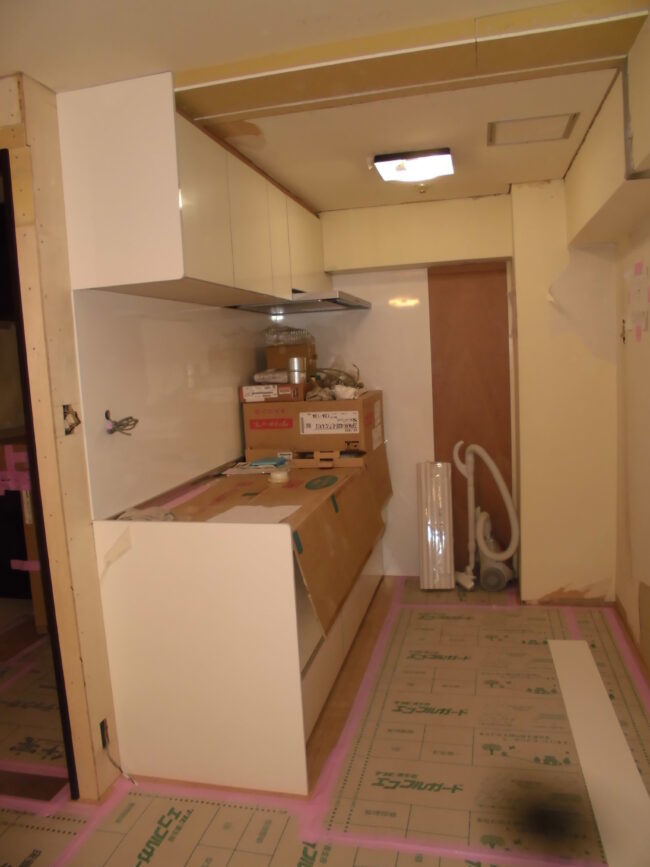 リフォーム部の森です。 フルリフォーム現場ですが昨日大工工事が完了しました。途中でキッチンとユニットバスの設置もおわりました。 キッチンはクリナップ製ラクエラ(間口210㎝)を採用しました。 以前のキッチンは195㎝だっ…