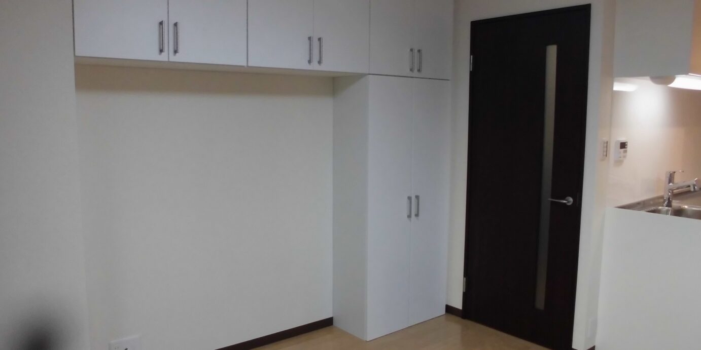 収納の少ないお部屋だったのでリビングダイニングに壁面収納を設置しました。