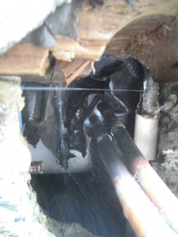 リフォーム部、森です。管理するアパートで漏水がありました。 部屋やユニットバスの床下など見れる所は全て確認したのですが漏水箇所が発見出来ません。 オーナー様に了解を取り廊下の土間をハツって土中の配管を掘り出しました。 す…