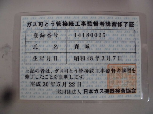 ガス可とう管接続工事監督者 講習 ブログBy 有限会社横浜ネットホーム2018年6月1日リフォーム部の森です。5月22日にガス可とう管接続工事監督者講習を受けてきました。 この講習を受けると簡単に言うとガス栓とガス機器を接続する工事ができる様になります。 例えばビルトインコンロの交換や屋外設置の給湯器の交換…
