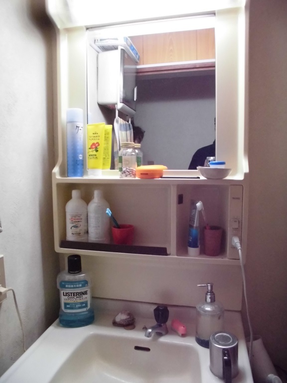 リフォーム部の森です。 洗面化粧台の交換工事を行いました。 既存の洗面台は2階にある補助的な洗面台だったので給湯が来ていませんでした。今回はTOTOの6L電気温水器を付けてお湯が使えるようにしました。 60㎝の洗面化粧台…