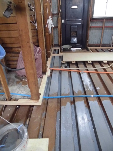リフォーム部の森です。 年明け早々から着工した現場の大工工事が先週終わり、あとは今週仕上げの工程を残すのみとなりました。 既存の根太も全て壊して置き床工法で新たに床下地をやり直しました。床が出来上がり、間仕切りの造作に取…