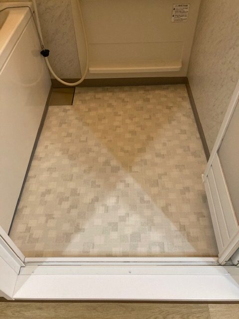 リフォーム部の森です。賃貸アパートで洗濯機置場のリフォーム工事を行いました。 築30年越える位のハウスメーカー建築のハイツです。 当時はまだ許容範囲だったのかもしれませんが、今では脱衣場狭すぎて機能しません。 そこでDK…