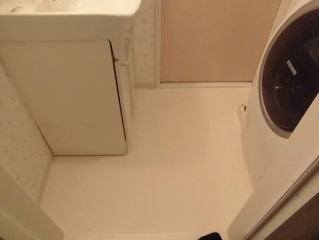 リフォーム部、森です。 ご在宅中で洗面所の壁紙とクッションフロアーの貼り替え工事を行いました。 全ての設備を一度外して何も無い状態にして貼り替えています。設備の脱着費用が必要になりますが設備が付いたままでの工事とは仕上が…