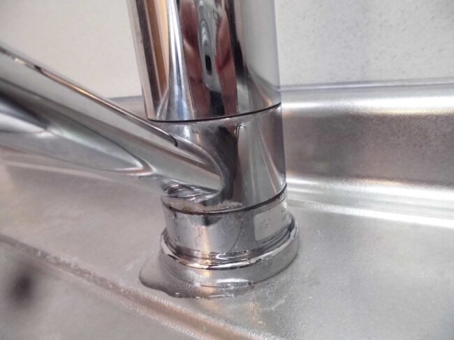 リフォーム部の森です。 賃貸物件でシングルレバー水栓の交換を行いました。 築13年のアパートで本体から水漏れです。カートリッジの交換も考えたのですが吐水部も傷が目立っていたので交換となりました。 本体を外し上面施工の…